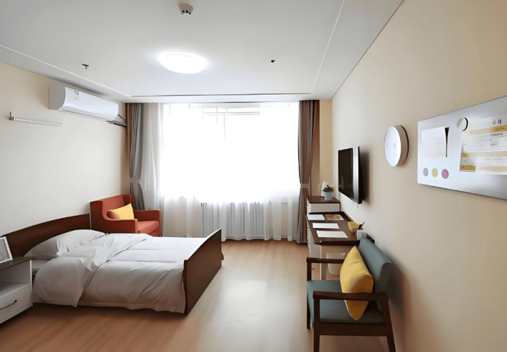 公寓采用“回廊式+组团化”的空间布局,分设活力长者区、介护专区及公共活动区。低层整合公共活动区与医疗区,包含康复花园、屋顶阳光花园、书画室及康复中心;高层为居住区,提供单人间、双人间及家庭套房等多种房型选择。单人间面积25-30平方米,配备独立观景阳台;双人间面积35-40平方米,采用隔音双层玻璃与分体式空调;家庭套房面积50平方米,设有独立厨房与会客区。所有房间均按适老化标准设计,配备防滑地胶、圆角家具、智能护理床及紧急呼叫系统,公共区域部署1500个智能传感器,实现无感化健康管理。