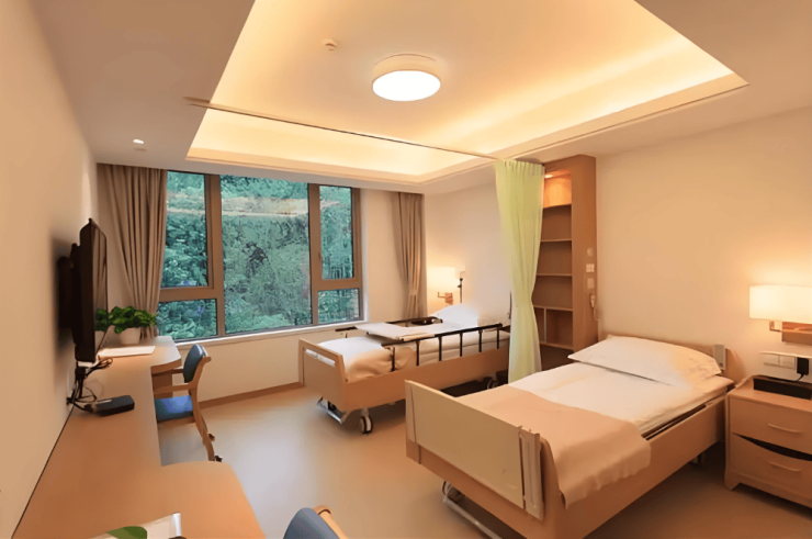 居住空间:涵盖单人间(25-50㎡)、双人间(30-40㎡)及套间(60-80㎡),均配备独立卫浴、智能护理床及毫米波雷达跌倒监测仪。套间增设独立阳台及智能安防系统,满足多元居住需求。