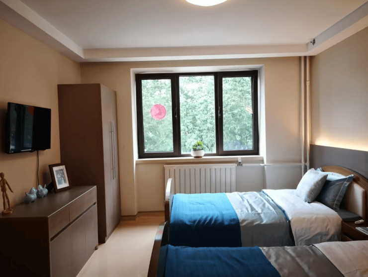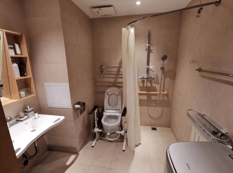 单人间:面积28-42平方米,配备日本进口智能护理床、独立卫浴、毫米波雷达跌倒监测仪及全景落地窗,床位费6500-9500元/月;