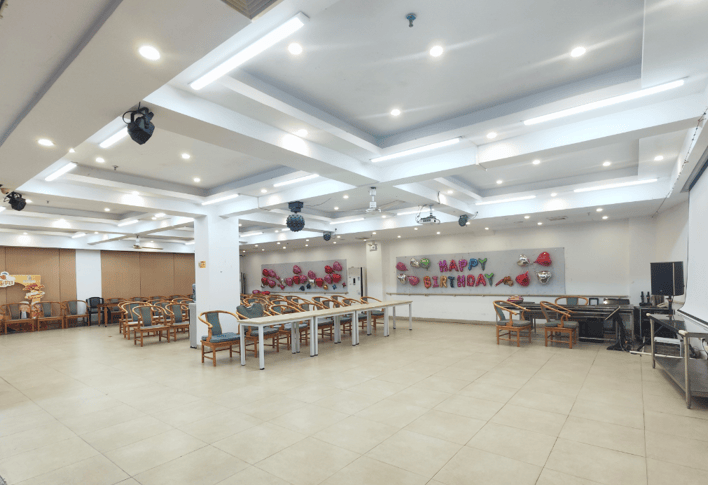 室内公共区域包括多功能厅、手工坊、棋牌室及影音室。多功能厅定期举办健康讲座、节日庆典;手工坊提供陶艺、绘画等课程,激发长者创造力;影音室则播放经典电影与戏曲,丰富文化生活。这些空间既满足娱乐需求,也促进长者间的互动交流。