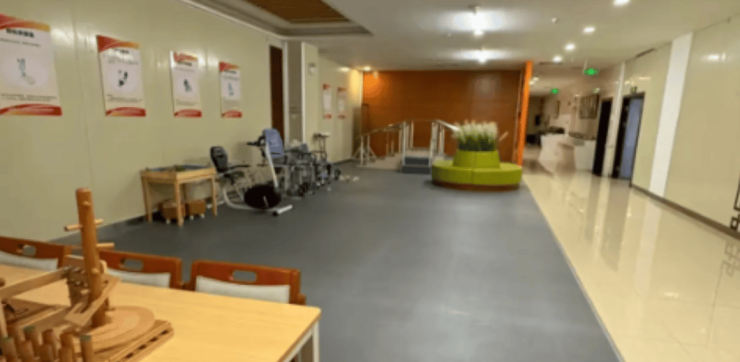 所有室内空间均进行专业化适老化改造,全面采用无障碍设计,配备走廊扶手、防滑地材、智能呼叫系统及夜间照明。房间内配置医用护理床、独立储物空间及适老化家具。公共区域设有餐厅、多功能活动厅、阅览区、康复训练区及露天休憩平台。虽处闹市,但通过专业的隔音设计与庭院绿化,有效保障了居住环境的安静与私密。