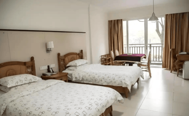 疗养院总建筑面积超8000平方米,规划床位500余张,涵盖单人间、双人间、三人间及多人间等12种房型,满足不同经济条件老年人的需求。居住空间设计上,单人间面积25—35平方米,配备医用护理床、防压疮气垫、独立卫浴(含无障碍扶手、紧急呼叫系统);双人间床间距≥1.2米,采用分体式空调与新风系统,确保空气流通与温度适宜;部分房型增设阳台,方便老年人欣赏户外风景。适老化细节上,防滑PVC地板、0.8米/1.2米双层扶手、夜光标识等配置,将跌倒风险降低60%,为老年人安全保驾护航。