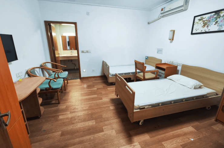 独立豪华单人套房,面积在60 - 80平方米之间,空间宽敞舒适。套房内配备医用级护理床,这种床可以根据长者的身体状况进行多角度调节,方便他们休息和护理。智能马桶具备多种功能,如自动冲洗、暖风烘干等,为长者的生活带来便利。24小时生命体征监测仪和紧急呼叫系统,能实时监测长者的生命体征,一旦出现异常情况,长者可以及时按下紧急呼叫按钮,工作人员会迅速赶到。床头设置的双控开关,方便长者在床上就能控制灯光。家具采用圆角防撞设计,避免了长者在日常活动中因碰撞而受伤。