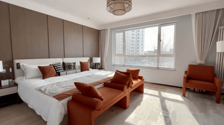 社区规划床位1210-1500张,已投入运营7000余张,涵盖自理、半失能、失能及认知症群体。收费采用“基础服务包+个性化服务包”模式,月费区间4500-21500元:单人间(30-40㎡)月费6000-8000元,双人间(25-30㎡)每床月费4500-6500元,套房(60-120㎡)月费12000-21500元,均含“三餐两点”餐饮服务;护理费按健康等级动态调整,自理型1200-2000元/月,失能型4500-8000元/月,认知症专护6000-11000元/月;餐费提供国宴级自助餐、清真餐及节气养生餐,月费1500-2500元。增值服务包括生态农场认养、定制药膳、康复理疗等,支持医保实时结算及长期护理保险政策,全程无隐形消费。