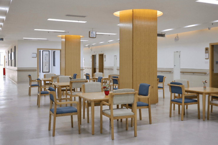 墙面转角均做圆角处理,这也是一个非常贴心的设计。在日常生活中,长者可能会因为不小心而碰撞到墙面转角,圆角处理可以避免碰撞伤害,减少长者受伤的可能性。这些看似微不足道的细节,却处处体现着护理院对长者的关怀和爱护,为长者营造了一个安全、舒适的公共环境。