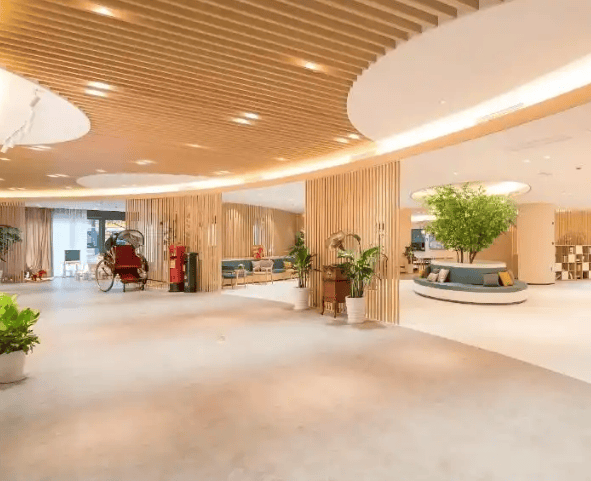 在建筑设计上,嘉道耆乐园养老院(城银路站)充分考量长者的居住舒适度,采用“回”字形布局,这一设计能最大限度保障南北通透,让每一个房间、每一处公共区域都能获得充足的采光,有效改善居住环境的通透性,减少潮湿闷热,为长者营造干爽舒适的居住氛围。