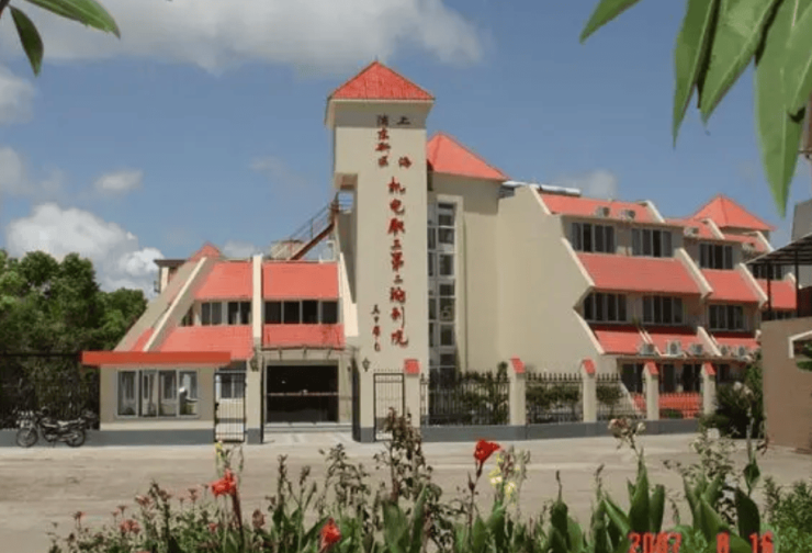 养老院占地 3300 平米,绿化率高达 40%,建筑面积 2760 平米,由三幢联体欧式建筑组成,造型别致。三幢楼之间通过采光条件优越的连廊连接,宽敞明亮的公共走廊方便老人自由行走,上下楼还设有电梯。房间类型多样,有单人房、二人房、三人房和四人房,均配备独立卫生间、家具、电风扇、空调、电视机、电话和无线呼叫服务系统。此外,还配套有餐厅、多功能活动厅、阅览室、棋牌室、休闲活动大厅、室内外健身场地等设施,满足老人日常生活和娱乐的需求。