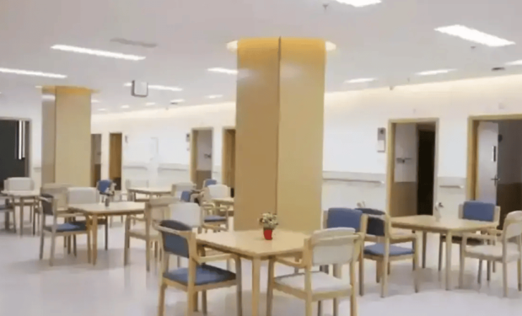 院区构建了完善的配套设施体系,实现生活、休闲、活动需求的全方位满足。公共区域走道宽度达1.8米,地面铺设防滑PVC胶,沿途设置休憩座椅与清晰指引标识。一楼设有喷泉景观与休闲座椅,四楼打造超大面积户外江景平台,形成垂直景观轴供长者赏景休憩。功能分区明确,涵盖接待区、活动区、书画室、影音厅等多元空间,其中影音厅配备VR体感设备,书画室提供数字绘画工具,全方位丰富长者生活场景。全院绿地面积占比达40%,四季花卉与景观小品错落分布,营造自然雅致的居住氛围。