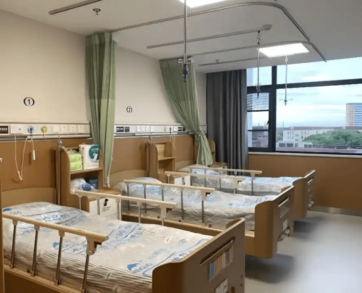 护理院核定床位450张,实际开放300张,床位配置充足且合理,避免了床位拥挤带来的服务短板。房型涵盖单人间、双人间、VIP套房及认知症专区,分类清晰、针对性强:认知症专区适配认知功能障碍长者,提供专属照护环境;单人间配备医用床、氧气接口,贴合有基础医疗需求的长者;VIP套间更贴心提供私人康复室,兼顾隐私与专业康复需求;所有房间均配备独立卫浴、中央空调、智能呼叫系统及防跌倒感应装置,全方位保障长者居住的便捷与安全。