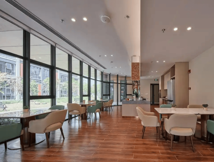 更值得一提的是,养老院与山姆会员店相邻,日常采购优质生鲜、生活用品等无需远行,极大提升了生活购物的便利性;同时,与上海第九人民医院浦东分院仅一墙之隔,这一近距医疗资源为老年人的健康提供了坚实保障,日常就医、突发疾病救治都能快速响应,彻底缓解了老年人与家属的就医焦虑。