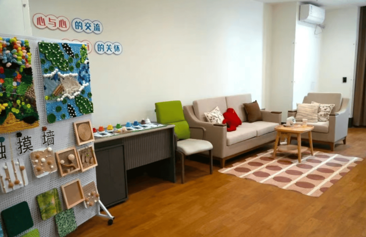 特护区针对认知症长者设置了“家庭式照护单元”,每单元仅12—15床,营造了一个温馨、熟悉的居住环境。采用蒙台梭利认知训练法,通过模拟超市、记忆花园等场景,帮助长者维持定向力,延缓认知衰退。工作人员会耐心地陪伴长者,与他们进行交流互动,给予他们关爱和支持。