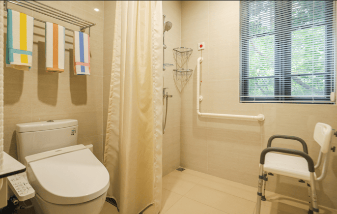 社区总建筑面积4.5万平方米,由6栋建筑组成,涵盖5栋活力长者公寓(535个床位)及1栋国际康复颐养中心(132张护理床位)。全屋采用适老化设计:家具边角圆弧处理、防滑地胶、双层扶手(间距65厘米)、3000K色温灯光减少眩光;每户配备智能胸牌,集成门禁、消费、紧急呼叫功能,搭配1200个定位器实现30秒精准响应。公共区域设有无障碍花园、步道及凉亭,绿化率高达60%,形成“三分钟都市生活圈+五分钟自然疗愈圈”。