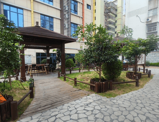 屋顶花园采用了无障碍设计,为长者打造了一个亲近自然、放松身心的空间。花园里设置了健身步道,长者可以在这里散步、慢跑,锻炼身体。清晨,长者们沿着步道慢跑,呼吸着新鲜的空气,感受着微风的轻抚,仿佛与大自然融为一体。