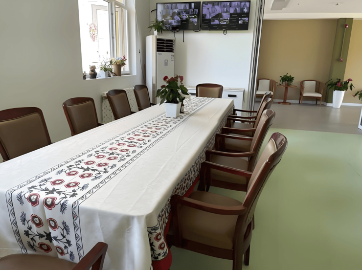 中心采用四合院式布局,一层平房结构无电梯设计,确保老人出行便利。所有房间均为南向双人间,配备空调、电视、热水器、紧急呼叫系统及适老化家具,实现24小时热水供应与冬季供暖。院内景观以园林式生态空间为主,设有200㎡阳光房、500㎡康复花园、锦鲤湖、农耕区及百果园,PM2.5浓度较市区低52%,负氧离子浓度达2000个/cm³,形成“三季有花、四季常青”的自然景观。公共区域配备棋牌室、书画室、非遗工坊及多功能厅,满足长者休闲娱乐需求。