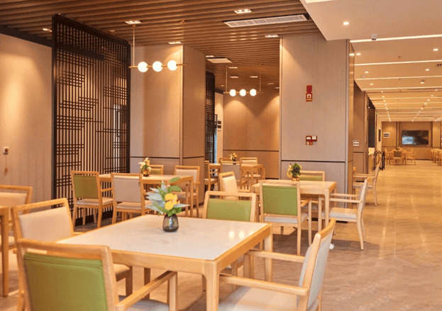 祈福护老公寓选址于钟村街祈福新邨晋福路,毗邻国家4A级景区大夫山森林公园,周边森林覆盖率超60%,负氧离子浓度达城市中心区的3倍。公寓距广州南站仅15分钟车程,通过地铁7号线可直达珠江新城,同时与中山大学附属第一医院、广东省中医院等三甲医院建立绿色通道,形成“10分钟医疗急救圈”。这种“离尘不离城”的区位设计,既保障了长者享受自然生态的宁静,又满足了紧急医疗需求的高效响应。