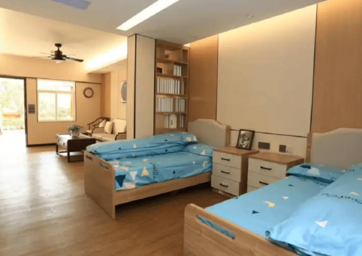 养老院占地面积逾万平方米,采用低密度园林式布局,绿化覆盖率达40%以上。中央景观区设有无障碍步道、休憩凉亭与四季花木,既满足长者户外活动需求,又通过自然景观调节心理状态。建筑内部空间规划遵循适老化原则:全区域防滑地砖、走廊双侧扶手、无高差门槛设计、智能感应照明系统等细节,最大限度降低长者日常活动风险。房间类型涵盖单人间、双人间及套房,均配备独立卫生间、紧急呼叫装置与适老家具,部分房型设置阳台以保障采光与通风。公共区域则设有阅览室、棋牌室、多功能活动厅等,为长者提供社交与娱乐空间。