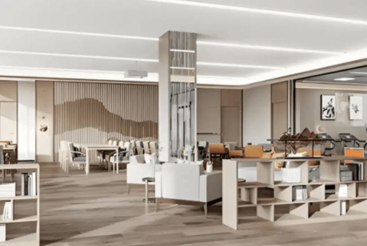 涵盖长者饭堂、康复训练室、多功能活动厅,配备等速肌力训练仪、认知训练系统等设备,由专业康复师团队提供个性化方案。