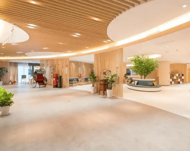 养老院将适老化理念融入每一处细节,公共区域与居住空间均采用全方位的适老化设计,最大限度保障长者的居住安全与舒适。在通行保障上,全楼覆盖无障碍通道与电梯,消除了长者上下楼与日常出行的障碍,方便行动不便的长者自由活动;每层均设置宽敞的休闲区,为长者提供了交流互动、休憩放松的专属空间,丰富了长者的日常休闲生活。