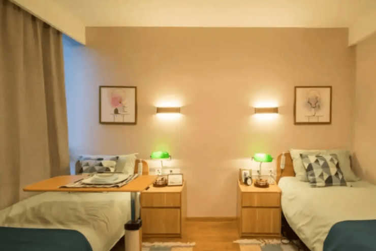 房间内的设施配置更是尽显贴心,铺设防滑地砖有效降低长者滑倒风险,安全扶手安装在床边、卫生间等关键位置,为长者起身、行走提供稳定支撑;紧急呼叫系统则为长者安全提供24小时守护,确保突发状况时能快速响应。同时,房间内配备中央空调与新风系统,中央空调保障四季温度适宜,新风系统持续净化室内空气,让长者的居住环境始终舒适健康。