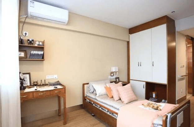 居住单元是长者生活的核心空间。房间布局合理,宽敞明亮,通风与采光俱佳,营造出温馨舒适的居住氛围。室内装修选用环保材料,保障长者健康安全。