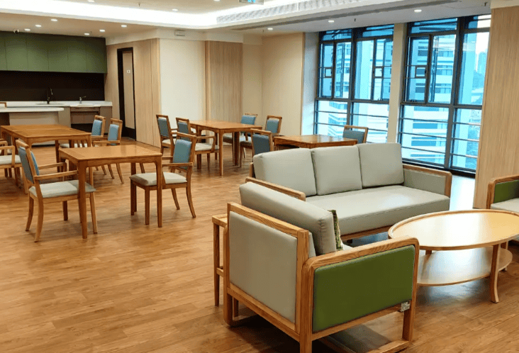 协助型服务:增加生活照料、基础辅助服务,房间内设置双层扶手及智能马桶,配备防滑淋浴椅、电动起身沙发,降低压疮发生率。公共区域设棋牌室、舞蹈室、KTV练歌房,日均举办活动超3场。