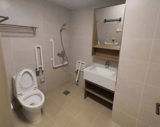 房间内的设施一应俱全,处处体现着对老人生活的关怀与照顾。独立卫生间的设置,让老人们无需外出即可解决日常所需,既方便又卫生。在卫生间里,各种设施都根据老人的使用习惯进行了优化设计,如扶手、防滑垫等,为老人的安全提供了保障。