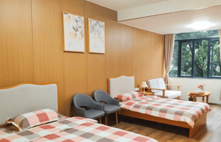 护理院提供单人间、双人间、套房及认知症专护房四类房型,面积从25㎡至60㎡不等。单人间南北通透,配备智能护理床、恒温花洒及药品冷藏格;双人间床间距达1.8米,配置双呼叫系统与折叠助浴椅;套房设有独立客厅、厨房及观景阳台,支持家庭式居住体验;认知症专护房采用“荷兰蝴蝶之家”模式,配置防走失系统与怀旧场景,满足不同层次长者的需求。