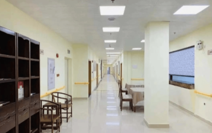 • 居住空间:单人间面积18平方米起,配备护理床、紧急呼叫系统、无障碍卫生间,床头灯、电视、空调等设施一应俱全;公共区域走廊安装双层扶手,地面采用防滑地胶,灯光使用暖光LED避免眩光;屋顶加装反光隔热膜,窗户安装可调节遮阳帘,确保室内冬暖夏凉。