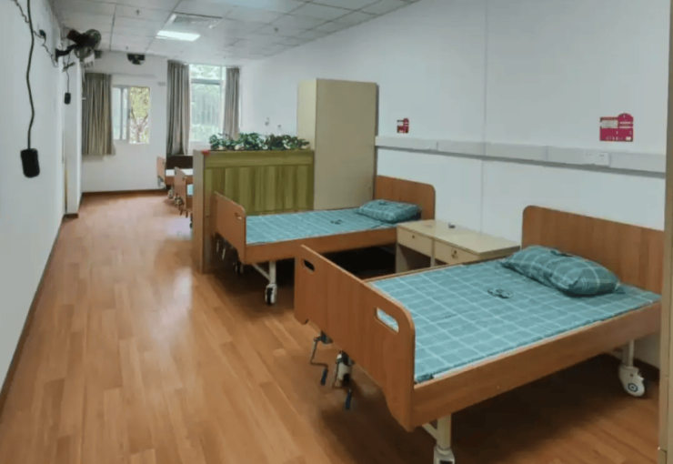 院区建筑总面积达8000平方米,采用6层低层设计,既规避了高层建筑带来的压迫感,也便于长者活动与紧急疏散。无障碍设计贯穿全院,公共区域铺设防滑地胶,走廊两侧设置双层扶手,电梯配备低位操作面板,全方位降低安全风险。房间内部经过专业适老改造,卫浴间安装助力扶手与坐式淋浴椅,床头配备可升降护理床,夜间感应地灯自动启停,从细节处保障长者居住安全,让长者在这里生活得安心、舒心。