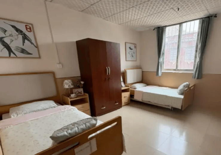 该院所有房型均按高标准适老化要求配置,全方位保障长者居住安全与便捷。房间内均配备独立卫浴、中央冷热水系统、空调、彩电及床头呼叫系统,卫浴区安装L型扶手、防滑地胶与紧急呼叫按钮,有效降低长者跌倒风险。家具采用圆角设计,床头灯配备夜光开关,衣柜内嵌可调节层板,床体高度适配轮椅转移,各类细节设计贴合长者生活习惯,让长者居住更安心、更舒心。