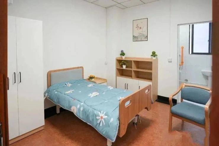 负离子空气净化器能够有效净化室内空气,为长者创造一个清新、健康的居住环境。双人间采用隔音玻璃隔断与分区储物柜,隔音玻璃隔断既保证了房间的采光,又能有效减少外界噪音的干扰,为长者提供一个安静的休息环境。分区储物柜让长者可以方便地存放自己的物品,兼顾了私密性与便利性。三人间面向经济型需求,房间内铺设PVC防滑地胶,有效防止长者滑倒摔伤,保障了他们的行走安全。家具均采用圆角设计,避免了尖锐边角对长者造成伤害。床头配备感应夜灯,当长者夜间起床时,夜灯会自动亮起,提供柔和的光线,方便他们行动。开关位置便于轮椅使用者操作,体现了对特殊长者的关怀。
