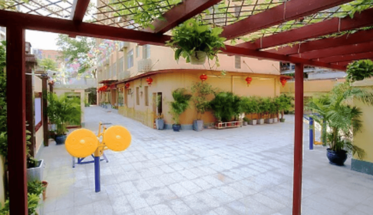 康泰养老院坐落于海珠区滨江东路,与珠江仅一路之隔。这里既有老城区的便利生活圈——步行10分钟可达菜市场、社区医院和公园;又通过现代适老化改造,将传统广府民居的“骑楼基因”融入建筑设计中:首层架空层形成风雨连廊,让长者无论晴雨都能自在活动;中庭的“榕树广场”复刻了广州街巷的社交场景,成为阿婆们跳广场舞、阿公们下象棋的“第二客厅”。