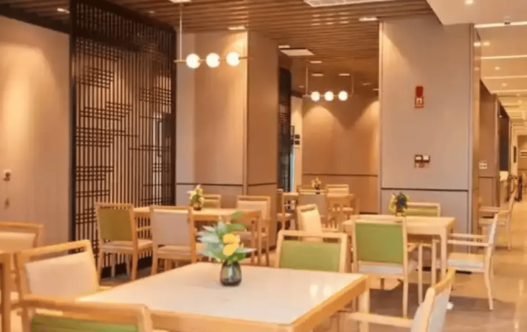 公寓提供单人间、双人间及套房三种房型,面积从30平方米至120平方米不等。所有房间均采用无障碍设计:独立卫浴配备防滑地胶与扶手,智能护理床可调节高度,毫米波雷达跌倒监测系统实现24小时安全守护。公共区域走廊宽度达1.2米,转角处采用圆弧防撞处理,双层扶手与间隔休息座椅构成安全通行网络。这种将功能性与美学结合的设计理念,让每个角落都体现对长者需求的深度理解。