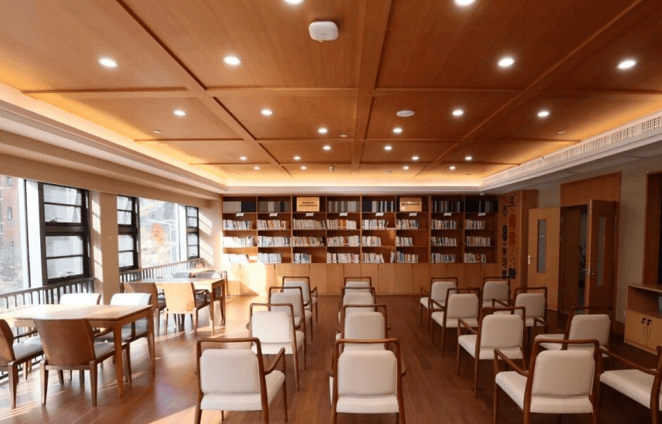 防滑地板+弧角家具:走廊和房间的地板是防滑材质,摸起来有细微的颗粒感;所有桌角、柜角都做成圆弧形,连墙上的开关都是圆角设计。“我们看过很多机构,能把认知症照护区动线设计得如此平和,需要很深的专业积累。”陪同参观的护理主任说,“比如这个走廊宽度1.8米,轮椅和担架都能轻松通过;每50米就有个休息椅,老人走累了随时能坐。”