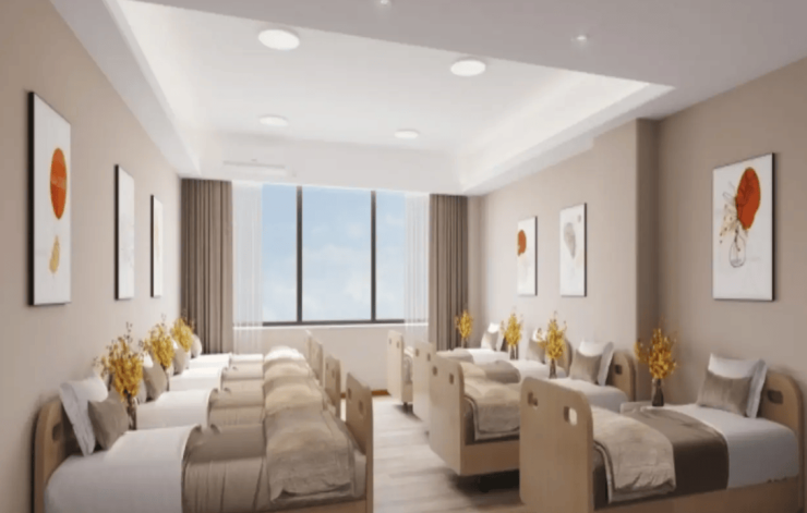 中心采用“垂直分区+功能集成”设计理念,首层为服务核心枢纽,配备无障碍坡道与智能引导设施;二层为日间照料区与独立餐厅,满足短期照料需求;三至七层为全托服务区,以双人间为主,搭配独立卫浴与新风系统;顶层打造感官花园,种植芳香绿植,为长者提供亲近自然的休闲空间。全楼采用暖色调装修与防滑地砖,走廊宽度达1.8米并设置连续扶手,细节处尽显适老关怀。