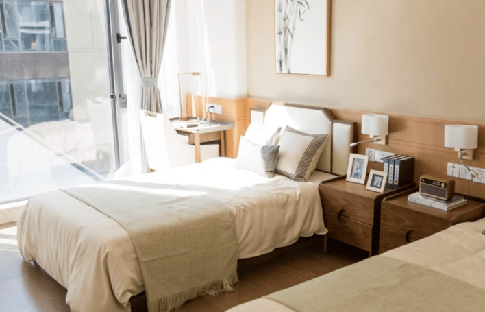 颐养中心的硬件设施堪称一流。房间宽敞明亮,装修温馨典雅,配备齐全的生活设施,从柔软舒适的床铺到便捷的卫浴设备,每一处细节都充分考虑长者的使用习惯和安全需求。