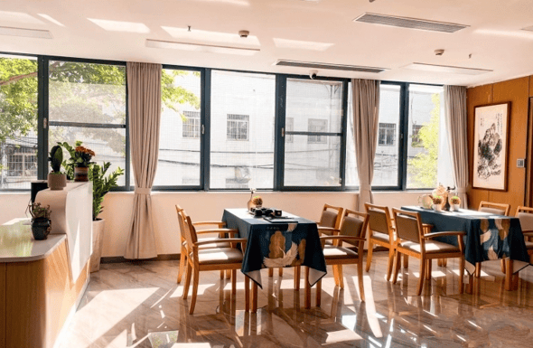 榕悦滨江颐养院前身是民国时期广东省航运局办公楼,作为广州市文物保护建筑,承载着城市的历史记忆和文化底蕴。2018年,专业团队历时两年精心修缮,秉持“修旧如旧”原则,完整保留骑楼廊柱、满洲窗、青砖墙等岭南建筑符号。骑楼廊柱诉说着过去的故事,满洲窗增添艺术魅力,青砖墙让人感受历史的沉淀,每一处都散发着独特的韵味。