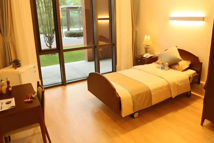 社区总占地面积16.7万平方米,绿化覆盖率超65%,PM2.5年均值较城区低35%,负氧离子浓度达2500个/cm³。3万平方米生态公园内种植银杏、樱花、玉兰等60余种适老植物,铺设透水防滑地砖,设置600米环形健身步道、太极广场及门球场。居住空间采用“回”字形布局,单人间面积35-45㎡,双人间25-30㎡含双卫设计,家庭套房达65㎡,全屋配备防滑地胶、U型扶手、恒温花洒及智能呼叫装置。公共区域采用无障碍设计,走廊宽度1.8米且双侧设置连续扶手,地下连廊无缝连接医疗与居住空间,确保风雨无阻通行。