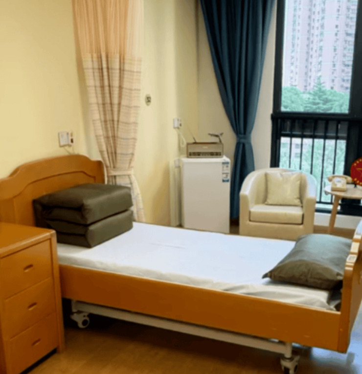 机构提供单人间、双人间及多人间三种户型,面积从20至40平方米不等,精准适配不同居住偏好与经济条件的长者。每种户型都以安全舒适为核心,房间内配齐独立卫浴,保障长者日常起居便捷与隐私;地面铺设防滑地胶,搭配圆角家具,从源头降低跌倒、碰撞等安全隐患。安全防护设施尤为周全,房间内配备紧急呼叫系统,床头安装双向呼叫按钮,长者遇有需求可随时发出呼叫,确保求助信号快速传递。
