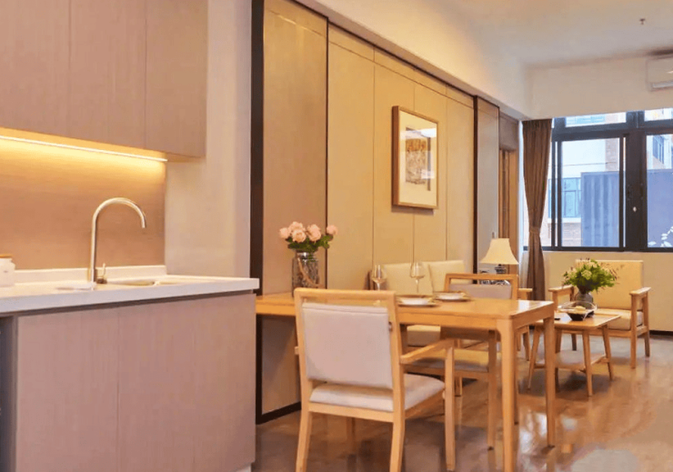 居住空间:两房两厅、三房两厅户型配备无障碍卫生间、紧急呼叫系统、防滑地板,家具边角均做圆弧处理;智能床垫可监测心率、呼吸,数据同步至护理站。