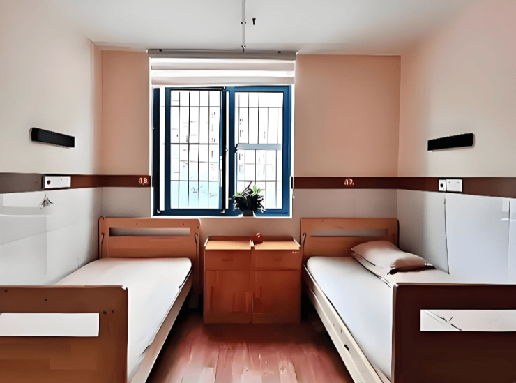 居住空间:单人间面积25-30㎡,配备独立卫浴、智能护理床、观景阳台及毫米波雷达防跌倒系统;双人间20-25㎡,采用分床设计并配置储物隔断;四人间35㎡,适合经济型选择。全院走廊安装不锈钢扶手与防滑地胶,跌倒识别准确率达99%。