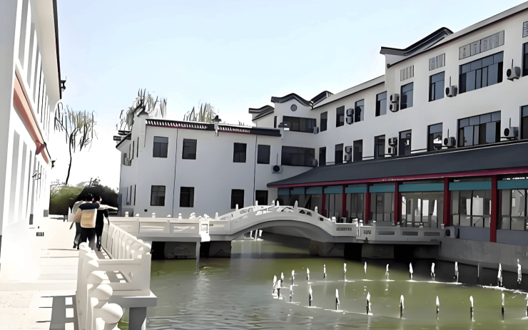 园区PM2.5浓度常年低于市区50%,负氧离子浓度达2000-3500个/cm³,夏季平均气温较城区低2-3℃。建筑群采用新中式风格,全楼配备医用级新风系统与地暖设施。居住空间分设单人间(30-50㎡)、双人间(40㎡)、三人间(50㎡)及豪华套间(60㎡),均配备智能护理床、防滑地板、双层扶手及紧急呼叫系统。公共区域设1200㎡康复大厅、图书室、屋顶药用植物花园及非遗工坊,千米健身步道串联湿地湖畔垂钓区与生态菜园,实现“推窗见绿、出门入园”的田园生活体验。