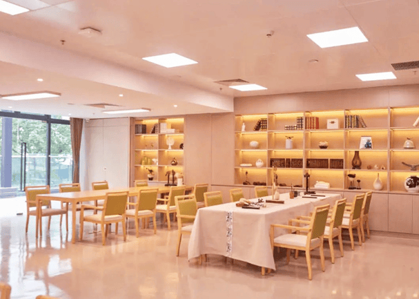 打造20余个功能空间,包括400平方米多功能厅、空中花园、书画室等。书画室配备智能书法台与3D打印笔,空中花园支持长者自主种植采摘,游泳池采用恒温设计。通过“季度主题活动+日常兴趣课程”的运营模式,形成“月有赛事、周有讲座、日有活动”的文化生态。这种将文化娱乐与社交互动深度融合的设计,有效缓解了长者的孤独感,提升了生活品质。