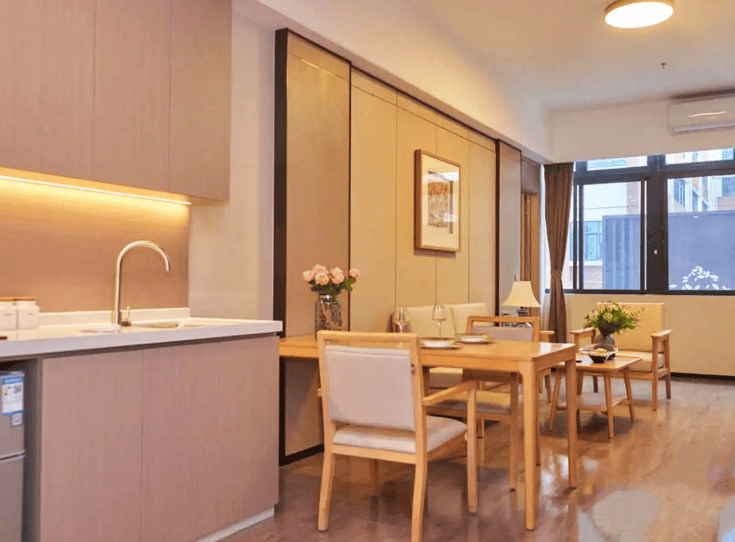 公寓规划500张床位,分设四大功能专区:单人间配备智能护理床与毫米波雷达跌倒监测系统,双人间采用隔音玻璃与分区储物柜,套房增设适老化厨房与家庭影院。所有空间均遵循无障碍设计标准,从防滑地板到扶手系统,从智能照明到紧急呼叫装置,每个细节都体现对长者需求的深度洞察。这种“模块化+定制化”的空间设计,既满足基础居住需求,又为高端客群提供个性化选择。