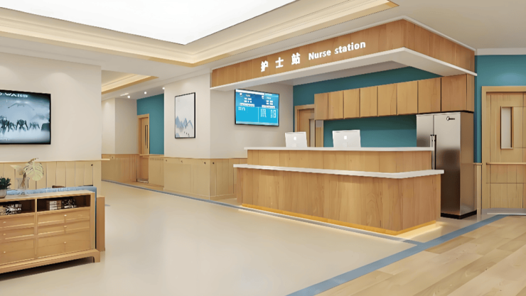 中心占地1500平方米,规划78张床位,涵盖单人间、双人间、三人间及认知症专区。采用“回”字形庭院布局,中央800㎡生态花园种植银杏、紫藤等60余种植物,夜间负氧离子浓度达市区2倍。屋顶药用植物园支持药膳制作,形成“生产-生活-康复”闭环。所有房间配备独立卫浴、防滑系数R11弹性地胶、双层扶手及1.5米高防撞护墙板,单人间增设毫米波雷达生命体征监测仪与智能温控系统。公共区域设300㎡康复中心(含德国MOTOmed下肢机器人)、500㎡户外休闲花园及15类功能区,走廊宽度≥1.8米,满足轮椅双向通行。