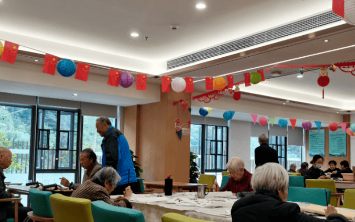 以岭南文化为核心,构建丰富的精神滋养体系。银龄学堂开设粤语讲古、摄影、智能手机使用等15门课程,“老教授课堂”由院内长者担任讲师,年均授课超50场,促进长者间的交流互动。传统活动丰富多彩,每月定期举办“西关茶会”“广绣工作坊”等活动,年均开展书法绘画、春节写桃符等文化活动超300场次。记忆传承计划组织长者录制口述历史、参与非遗技艺传承,有效提升认知症长者的生活质量。代际融合工坊通过“小手牵大手”活动,年均举办跨代际交流超50场,促进代际情感联结。