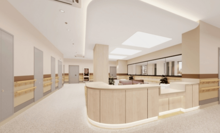 在硬件设施规划上,中心以规模化布局和科学化设计彰显强劲的服务承载能力。中心总占地36亩,折合面积约24000平方米,开阔的场地为功能区域的合理划分与拓展提供了充足空间;建筑面积达5万平方米,内部基于“医养康融合”的核心需求,精心规划了医疗诊疗区、康复训练区、居住照护区、公共活动区、后勤保障区等多个功能板块。各功能区域边界清晰、动线设计合理,医疗诊疗区配备专业诊疗设备,康复训练区配置多样化康复器械,居住照护区注重适老化细节,公共活动区满足长者社交娱乐需求,各区域高效衔接、协同运转,为医疗服务、康复干预与日常养老照护的同步开展提供了坚实的空间与硬件支撑。