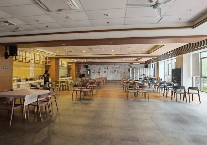 公共区域设置空中花园、棋牌室、KTV房等12类功能场室,采用吸音材料与防撞设计,兼顾社交需求与安全舒适。同时,园区自主研发的智慧养老平台,通过可穿戴设备实时监测长者活动轨迹,异常情况自动预警;公共区域覆盖智能安防系统,门窗磁感应、烟雾报警器与紧急呼叫装置形成三重防护;夜间巡更路线通过GPS定位技术实现全程可视化管理,为长者的安全保驾护航。