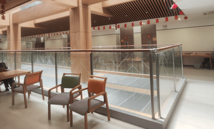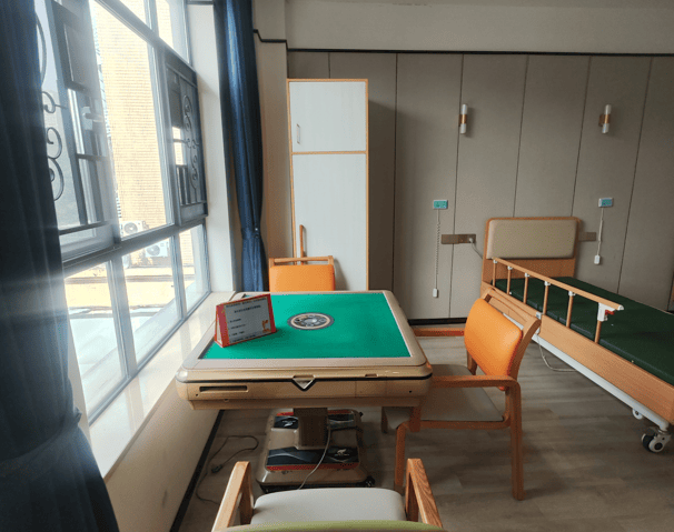 黄石街综合养老服务中心总建筑面积5145平方米,居住区提供单人间、双人间及双人套间,面积从30至50平方米不等。每间房均配备智能护理床、独立卫生间、防滑地板及恒温空调,床头设置紧急呼叫按钮,房间内安装无障碍扶手。一位入住的长者说:“房间布置得很贴心,像家里一样温暖。”公共区域的长者学堂、书画室、棋牌室及屋顶花园,则为长者提供了丰富的休闲娱乐空间。