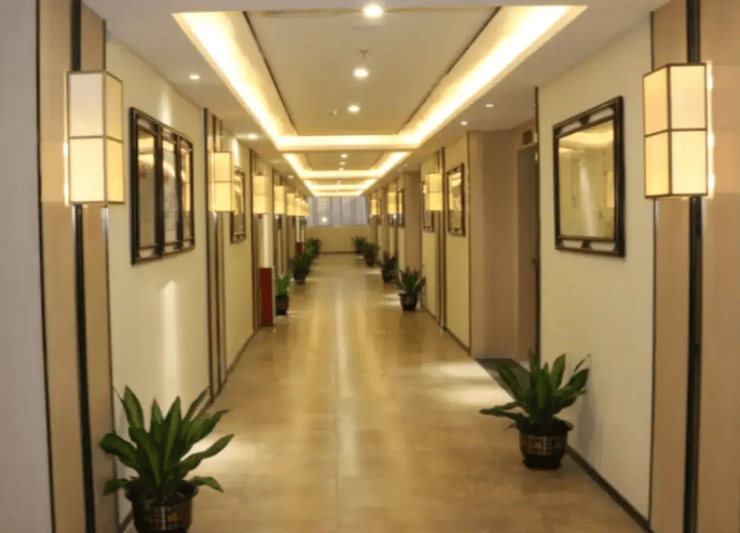 院区总占地16万平方米,其中5.4万平方米为生态园林,绿化覆盖率高,负氧离子浓度常年保持在2000个/cm³以上,堪称都市中的“天然氧吧”。环形健康步道蜿蜒穿梭于绿荫之间,沿途点缀药草种植园与休憩节点,供长者散步锻炼、亲近自然;阳光房内四季常绿,充足的自然光与绿植相映成趣,营造出温暖疗愈的休憩氛围。全院公共区域采用无高差地面、PVC防滑地胶设计,走廊宽度不小于1.8米,扶手高度精准设定为85厘米,细节之处全方位保障长者活动安全。
